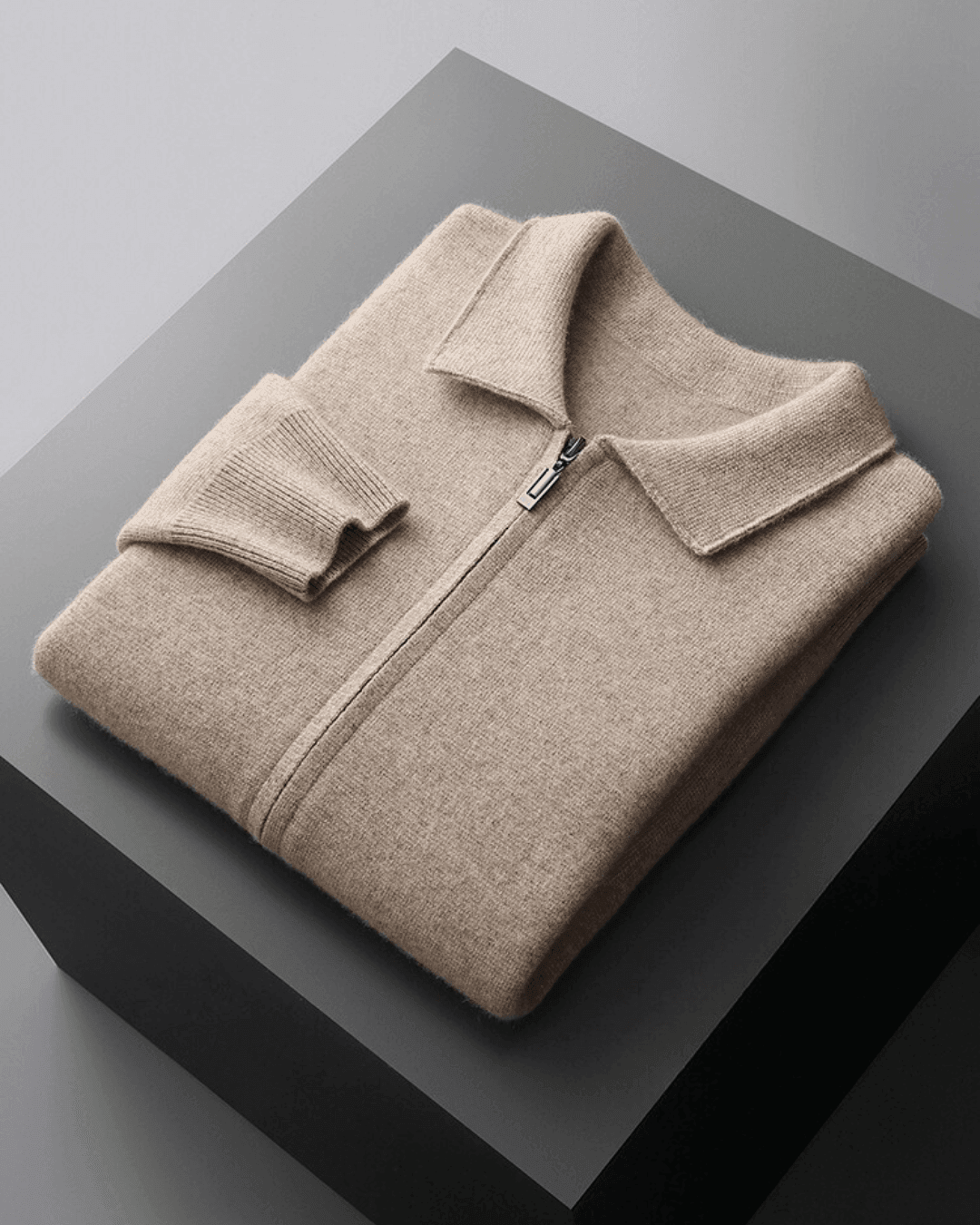 The Gentleman Fit 6 - Desert Breeze is the epitome of relaxed elegance. Featuring a beige wool cardigan, light stretch trousers, and the iconic Heritage Loafers, this outfit blends effortless style with everyday comfort.